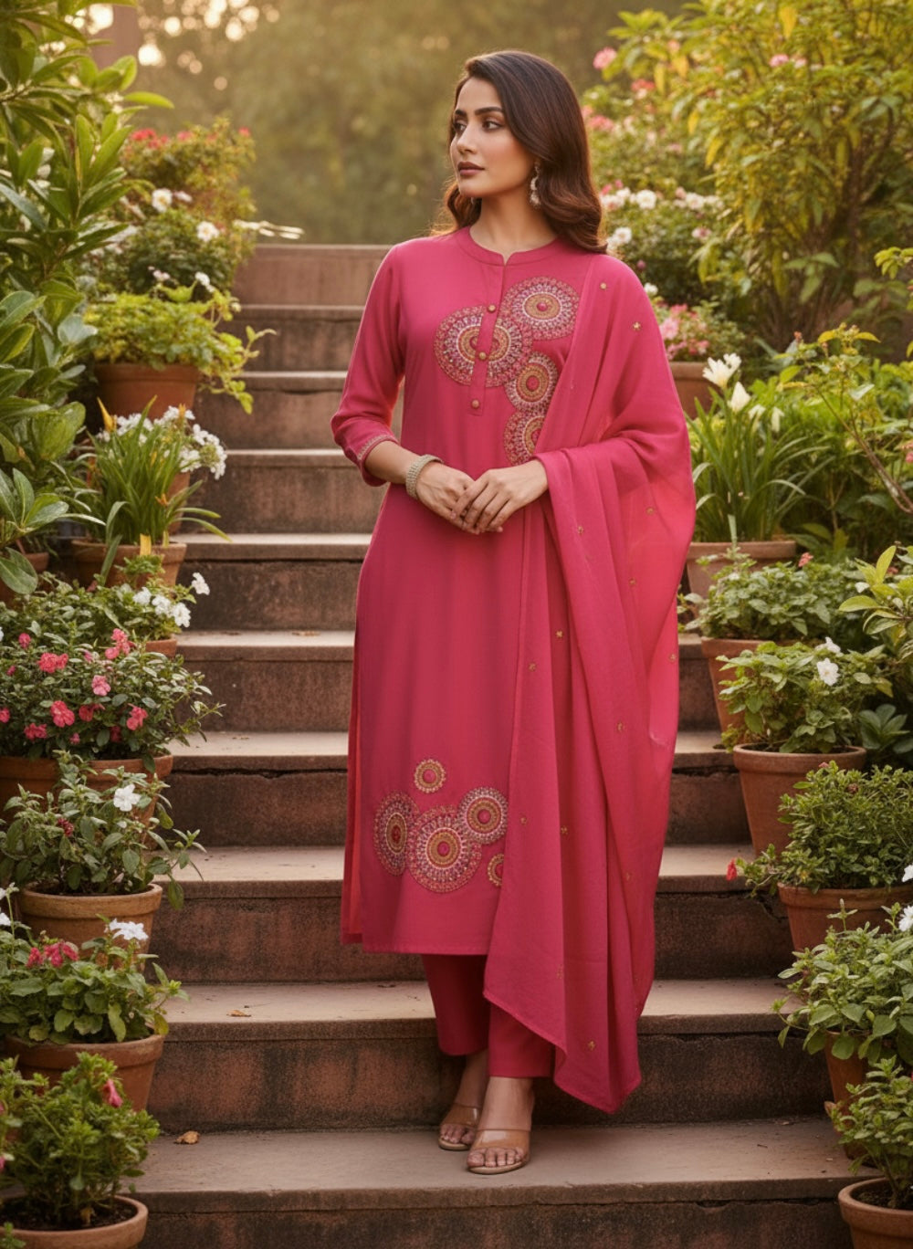 Pink Embroidered Kurta with Pant and Dupatta – Sagarmal index